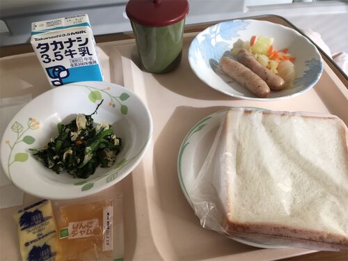 首から出ている管が微妙な位置で邪魔して、昨夜も寝たり起きたりの繰り返し。せっかく静かに寝られるチャンスなのに、寝られないもどかしさったら。1度は5時30分に起きたけれど、二度寝して7時前に起きた。 朝ご飯 食パン、湯葉と春菊のおひたし、ハー…